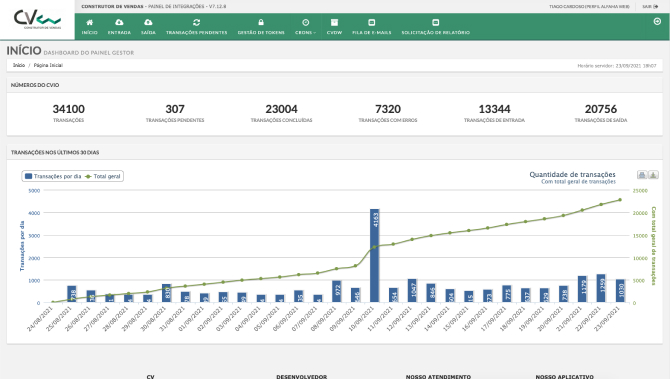 Tenha total controle de suas integrações através do nosso Painel CVIO, desenvolvido exclusivamente para você.