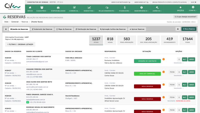 Através do Espelho de Vendas do CV, suas equipes conseguem analisar em tempo real quais lotes estão disponíveis e quais já foram reservados. Assim, sua urbanizadora evita reservas duplicadas e assegura a eficácia das atividades.