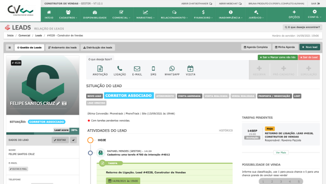 Com o CV, você consegue acompanhar o andamento de leads por todo o Funil de Vendas com facilidade e assertividade. Agora, é muito mais prático criar novas estratégias de qualificação e aumentar sua base de contatos acompanhando e nutrindo seu lead quando necessário.